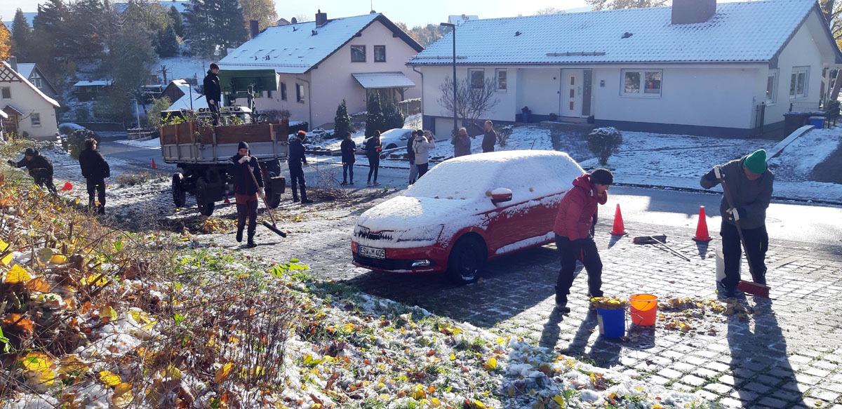 Der Arbeitseinsatz am vergangenen Samstag an der TSV-Turnhalle verlief trotz Wintereinbruch reibungslos. Der TSV-Vorstand bedankt sich ausdrücklich bei allen Helfern und Helferinnen. Alle Abteilungen waren vertreten, ein Sonderlob geht an Volleyball, Schwimmen und Tischtennis. Toller Einsatz von euch allen! Auch die Veranstaltung am kommenden Adventssonntag konnte dadurch schon ein bisschen vorbereitet werden. Der gemeinsame Imbiss mit Fleischkäse und Gehacktes im Anschluss war ein schöner Abschluss.