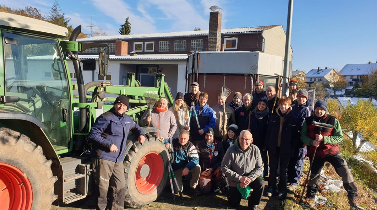 Schnee im bis dahin so milden November, wer hätte das gedacht. Sehr zur Freude der TSV-Rodler, denn die kleinen Hänge an der Steinrassel ermöglichten schon erste Rutschpartien. Das Sträucher Schneiden am steilen Hang war dann durch den Schnee schon etwas beschwerlicher.
