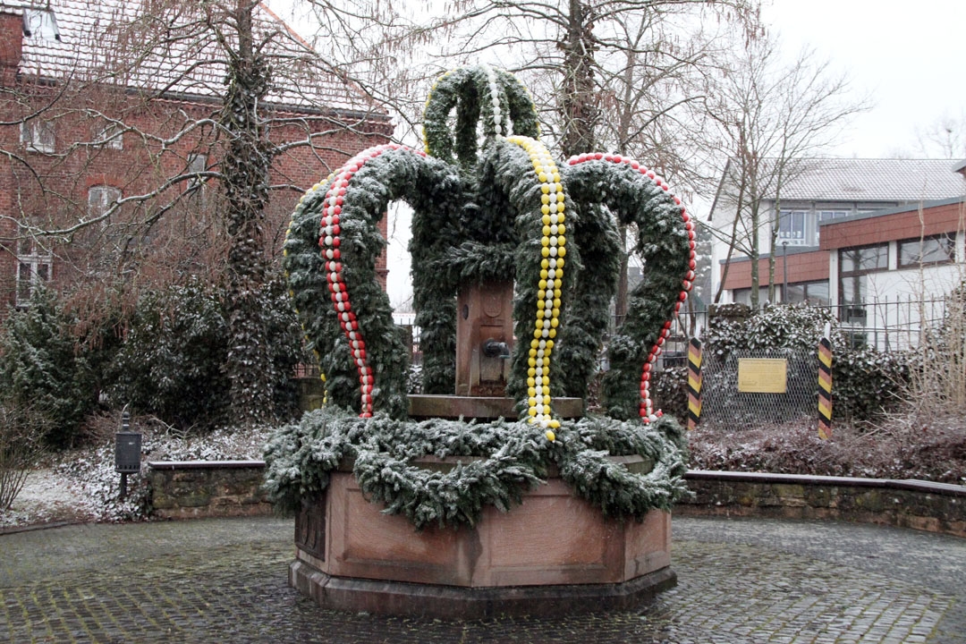 Draußen vor dem hohen Haus stand seit einigen Stunden die Osterkrone auf ihrem Stammplatz. Die “Kronen-Gruppe” mit ihren emsigen Handwerkern und Bastlern sorgte einmal mehr für jenen schönen Schmuck, dem sich bestimmt dann auch wieder die putzigen Holzhasen anschließen werden. Noch zeigt sich die Witterung allerdings wenig frühlingshaft, und es liegt tatsächlich etwas Schnee im Tannengrün zwischen den bunten Eiern. Bis Ostern sind´s noch zwei Wochen, aber es ist nicht völlig auszuschließen, dass es eine Neuauflage des letzten Bildes der Galerie geben kann. In diesem Sinne eine gute Zeit. Und nicht vergessen; heute in einem Jahr wird´s feierlich …