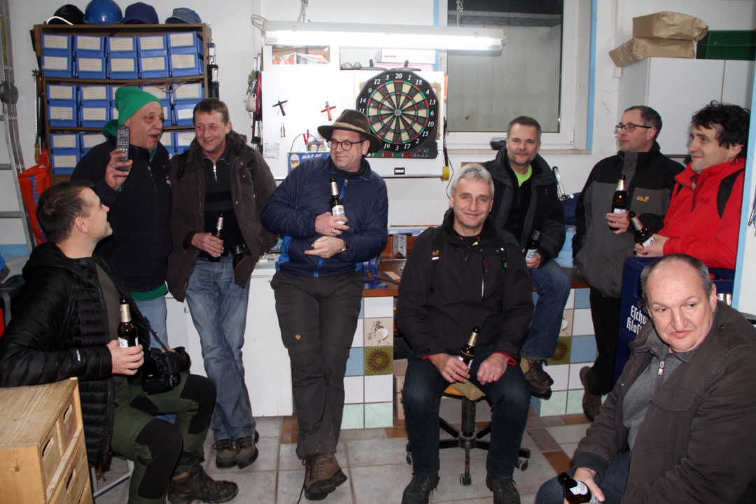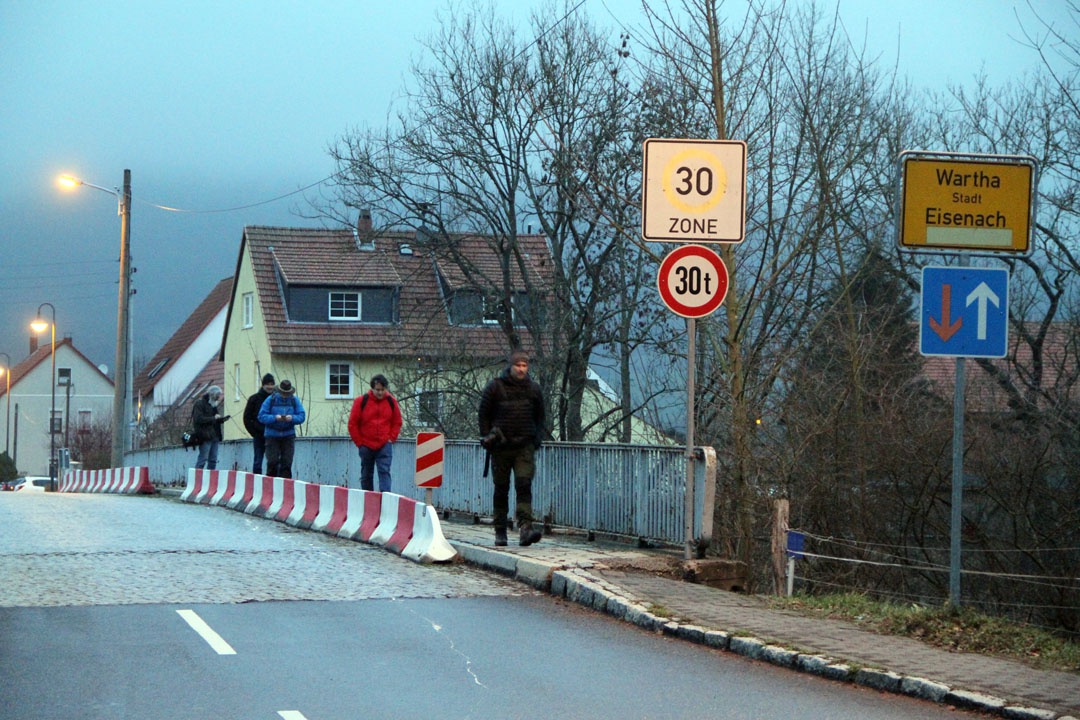Auf der Höhe war es recht stürmisch. Vorbei an den Klippen wechselten wir nach Thüringen, um oberhalb von Pferdsdorf das Picknick zu genießen. Wanderwart Klaus – man muss die Strecke nur goglern – führte Etliche von uns zum ersten Mal an eine spektakuläre Stelle direkt unter der großen Werratalbrücke über Hörschel. Hinunter nach Wartha lockte das Stüberl zur gemütlichen Einkehr bei Krombacher und Soljanka bis zur Dämmerung, ehe das kurze Schlussstück über Neuenhof nach Hörschel in Angriff genommen wurde: Abendbrot im Tor zum Rennsteig, Heimfahrt im Cantus und Helles in einer Garage … – einmal mehr ein gelungener Ausflug!